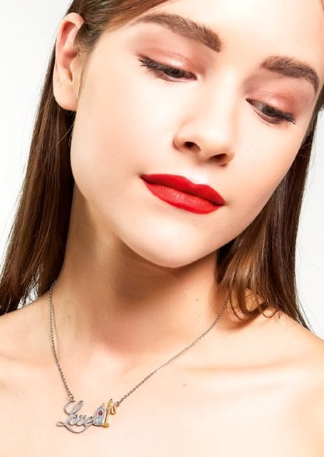 Una linea di esclusive collane in acciaio composte da scritte tridimensionali e piccoli dettagli colorati impreziosite da finiture color oro capaci di
